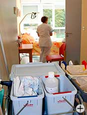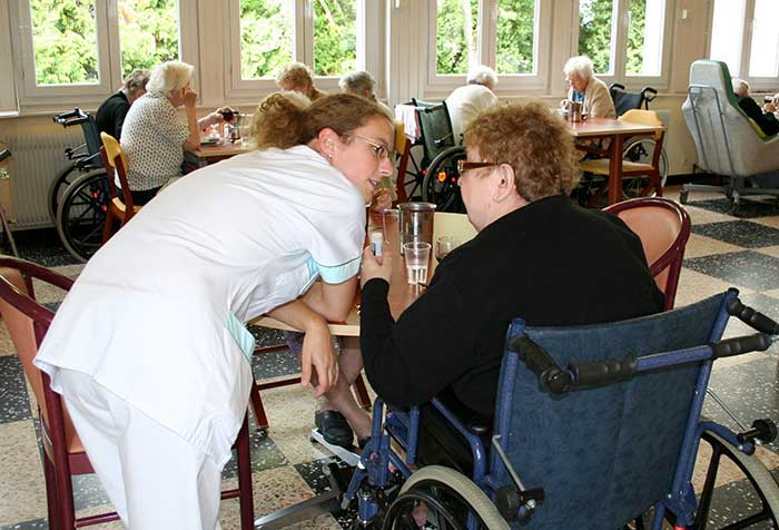 • L'équipe soignante : Sous l'impulsion du responsable infirmier, les infirmiers et les aides-soignants, chacun en ce qui les concerne, vont vous apporter chaque jour des soins ou vous aider à réaliser les gestes courants de la vie, pour que votre séjour soit le plus agréable possible.